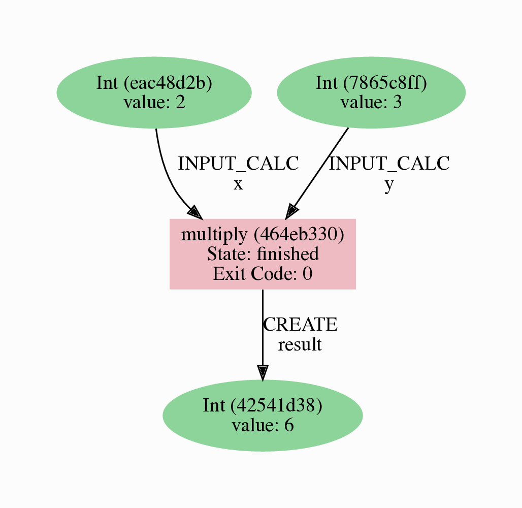 Note that by executing the multiply function, all input and output nodes are automatically stored in the database: