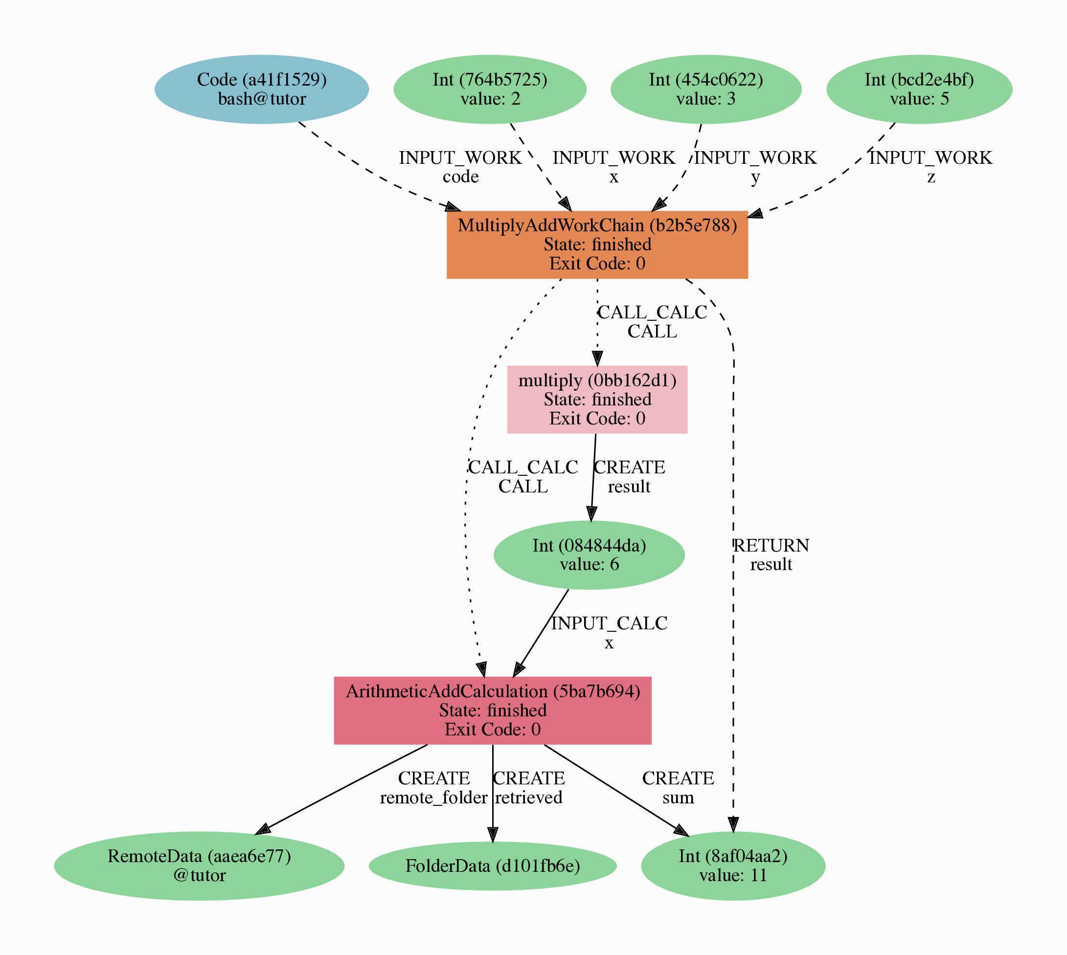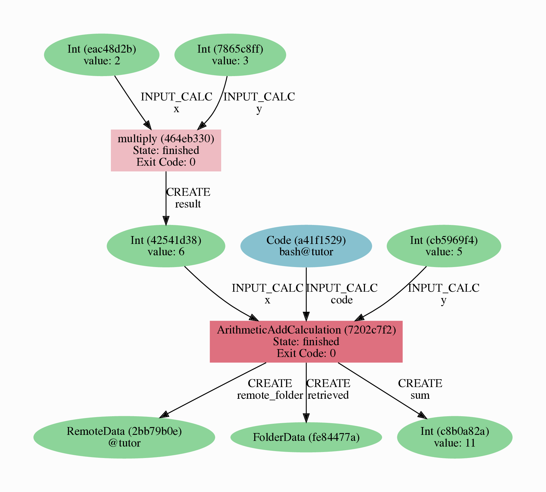 Fig. 4 Final provenance Graph of the basic AiiDA tutorial.¶